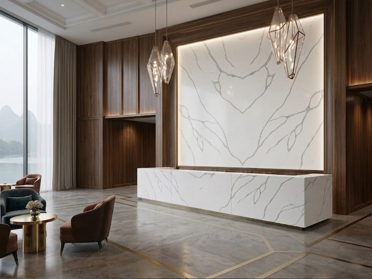 1. Hospitality Interiors: Transform a lobby reception desk or a grand feature wall into a landmark of luxury.
